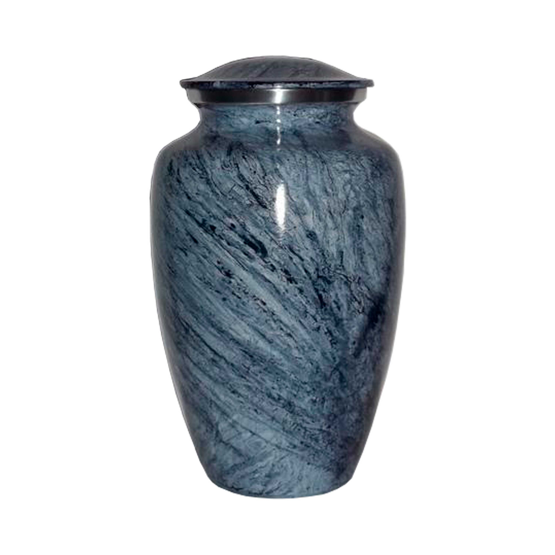 The Abstract Blue Marble Urn showcases a dynamic mix of blue hues with abstract veining, creating a bold and artistic tribute for human ashes.